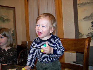 after me pass by and then I finally found a lonely little spot way down at the end of the street. I always feel personally affronted by such circumstances, "How rude. Don't they realize that I have to carry a big baby all that way? They don't have big babies. They are selfish. Oh wait, I am trying to lose weight. What a great opportunity." So instead of changing my mind, I lugged my big baby down the street, around to the back of the house and in through the garage. The scene was typical of any other garage sale: an old fuchsia sofa (I need a new couch, but my walls are red, cringe!), random gardening tools, some broken chairs -- no portent of anything noteworthy. I wondered if this was the sale in its entirety, but then saw that there were people inside the house. I sidestepped my way unsuspectingly through the narrow back door and found myself in a veritable Aladdin's Cave! (Angels singing -- Aaah, Aaah). Everywhere I turned another treasure caught my eye. In the butler's pantry were tiny Limoges saucers for .50¢, the kitchen held heaps of trays and bowls overflowing with kitchen ware. The dining room had sets of china and old Japanese framed prints. The living room had beautiful furniture -- lacquer hutches and a mahogany secretary. I found myself wanting to transport the contents of the house lock, stock, and barrel to my own. But I resisted and merely crept around looking and pondering. There was part of me that felt like a plunderer, rummaging through another woman's things while she is powerless to do anything about it. And the thought coming quickly behind that you really cannot take it with you. You spend your life scrambling around and really in the end, very little of it matters. Those impressions kept my hands loot free for a while (or was it that big baby?) and I felt somewhat somber as I looked at the scraps of her earthly life: She was a mother -- three boys and one girl; her husband was a prominent doctor in the area; she was catholic; she loved dishes, crystal, and silverware; she was a quilter, a gardener, a reader, a cook, a traveller, a homemaker. She had made a lovely home and I felt a comforting spirit there. I turned, and there on a table in a back room were my dishes that I use every day! I smiled and thought, "We are kindred spirits. No wonder I like every single solitary item in this house." This discovery changed my tune as I began to think that she wouldn't mind, with her newly acquired perspective from the other side, if her things went to another house with someone who would enjoy them. I thought about my own eventual demise and the inevitable letting go. It will be fine. With that I picked up a lovely set of cake plates -- each with its own flower pattern, grabbed the little saucers I had seen earlier which would be ideal for sushi dipping, and then went to stand in line. I made my purchases then stopped back by the dining room. Hmmm. What a table! It matches my hutches perfectly. And those chairs. I don't like the way that lady is eying those. In fact, I am pretty sure that those belong in my house. I picked up the phone and told M that I was going to buy a new dining set. "We already have a table." "I know, but we this one is perfect!" We went the next day to pick it up and everything was discounted, in fact by the time we left everything was 75% off. Here is what we ended up with: dining room table with three leaves and six chairs (same brand as my free hutches), loveseat (